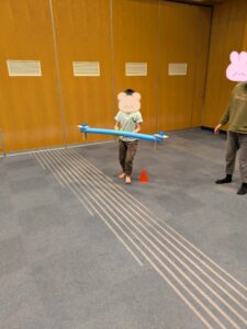 設定遊びのやじろべえでは、すごくバランスを取るのが難しく、何度も落としてしまう場面がありましたが、最後まで諦めず「取って運ぶ」を繰り返し頑張ることが出来ていました!
